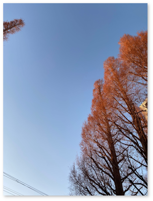 葉が落ちたメタセコイアの木