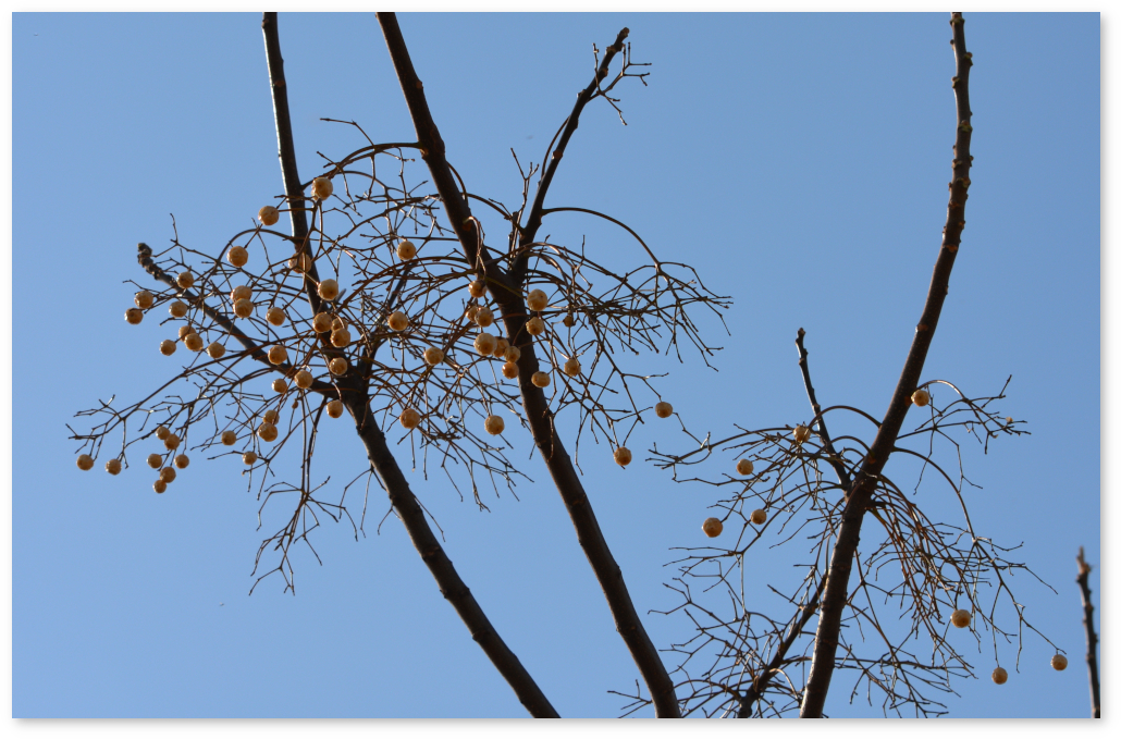 川にはよく柳の枝などが流れつき、そのまま大きくなることがあるが、写真はたくさんの実が成っている。拡大すると柑橘類にも見えるし、一瞬カキかなと思えるときもある。