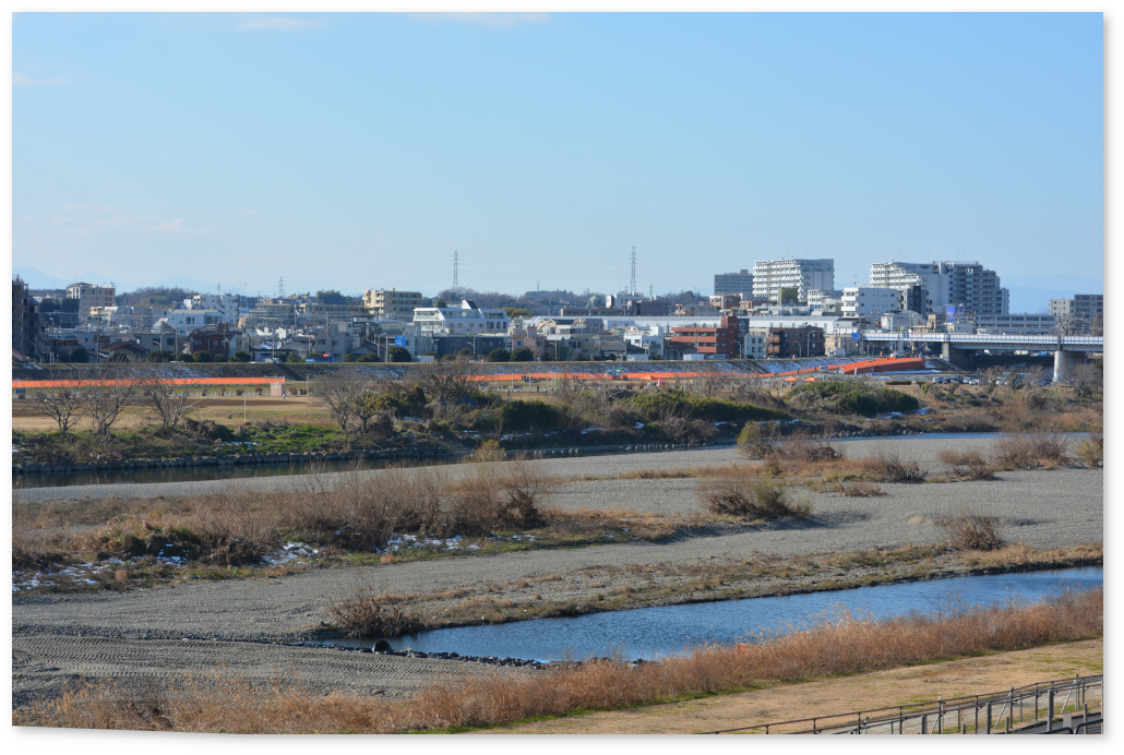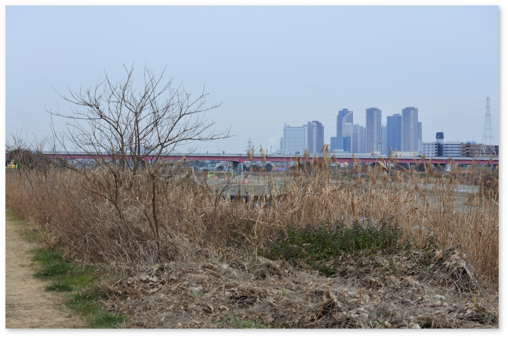 写真は先日の多摩川川原。向こうに見えるのは武蔵小杉のビル群。