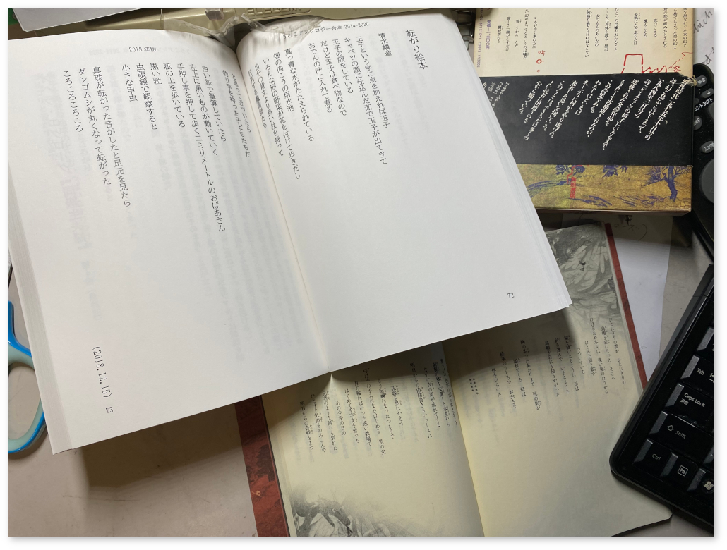 A5かb6、四六判など迷うが、ページを広く使えて字を大きくできるA5で『うろこアンソロジー合本』よりも天の空きを広げればいいのかもしれない。