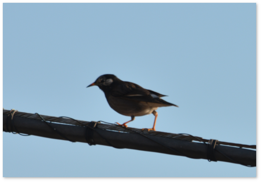 窓から見える電信柱あたりで、鳥が鳴いているので見るとムクドリが数羽来ていた。