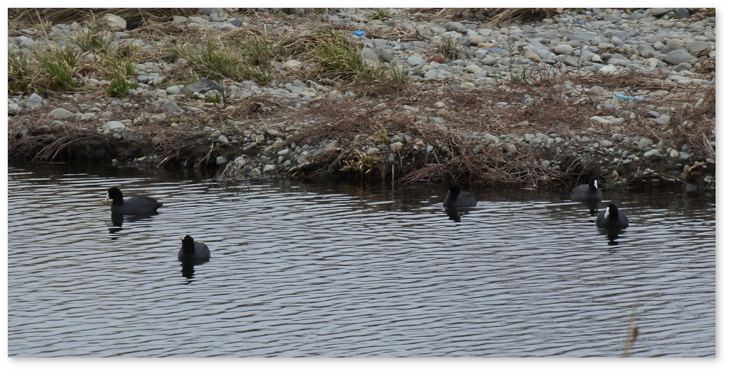 冬ざれの景色だったが、鴨がいた。またムクドリの群れもいたので撮った。