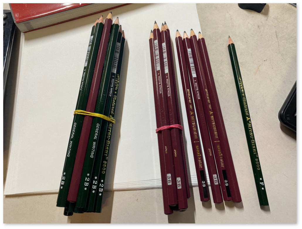 2Bと3Bの鉛筆は削っておいて、だいたい1日4本ぐらい使っている。