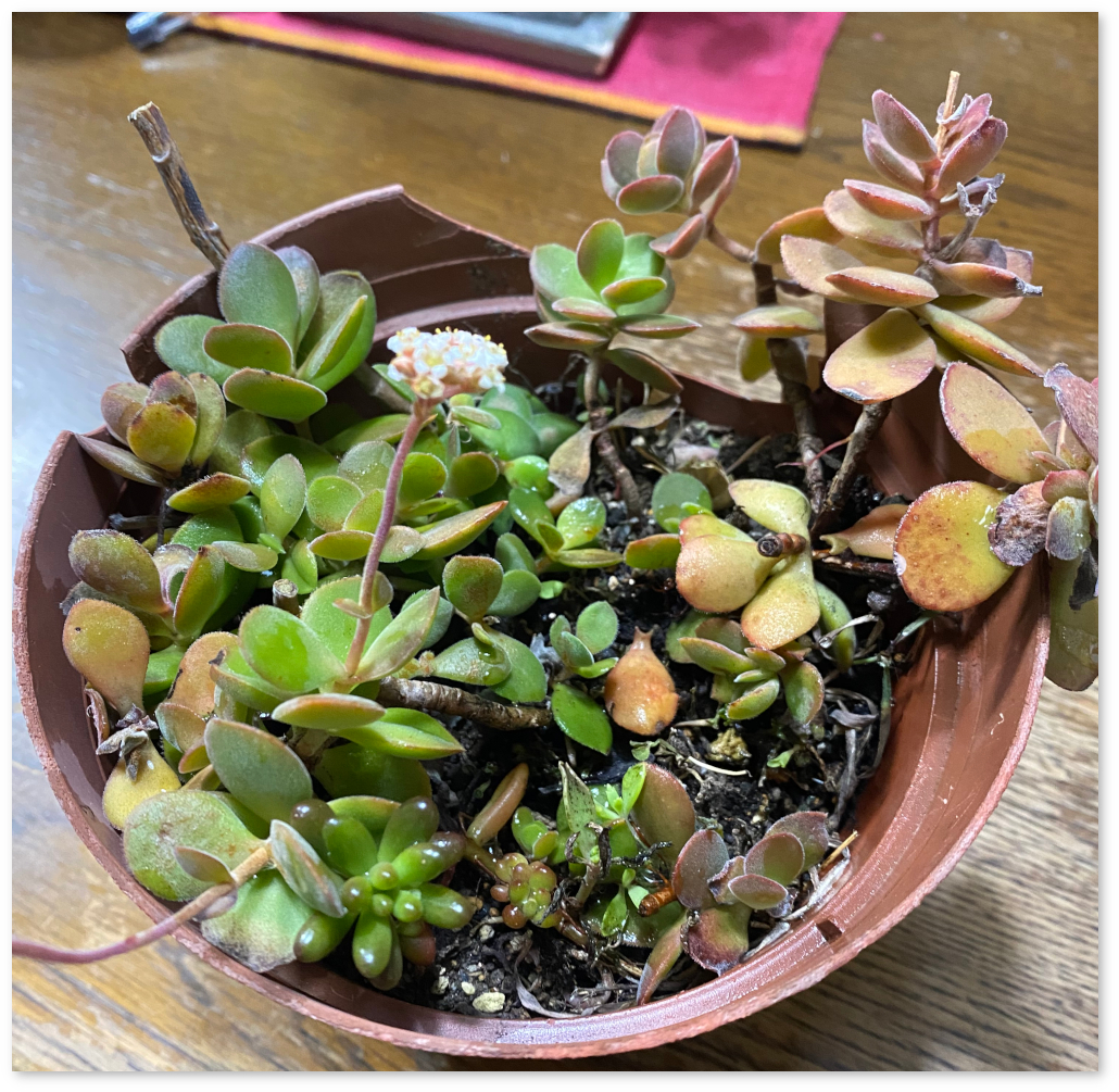 雪に当てて枯らしてしまう寸前に取り込んだ多肉植物。