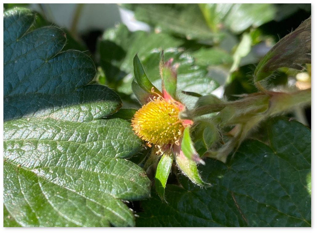 朝の散歩をしていたら、いちごの鉢が園芸店にあった。