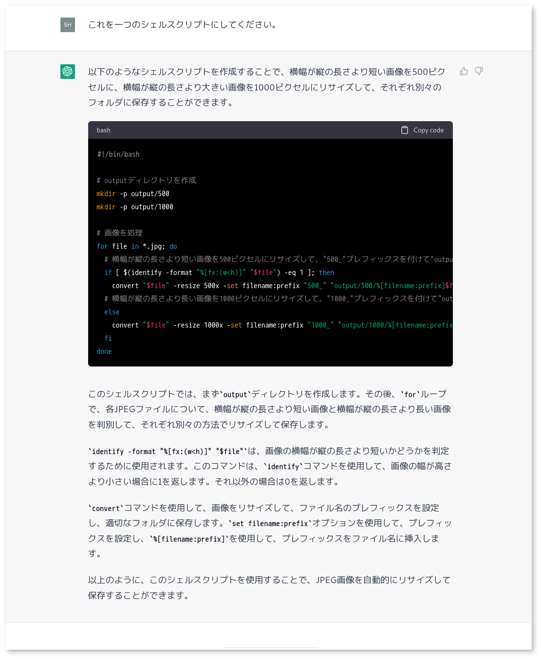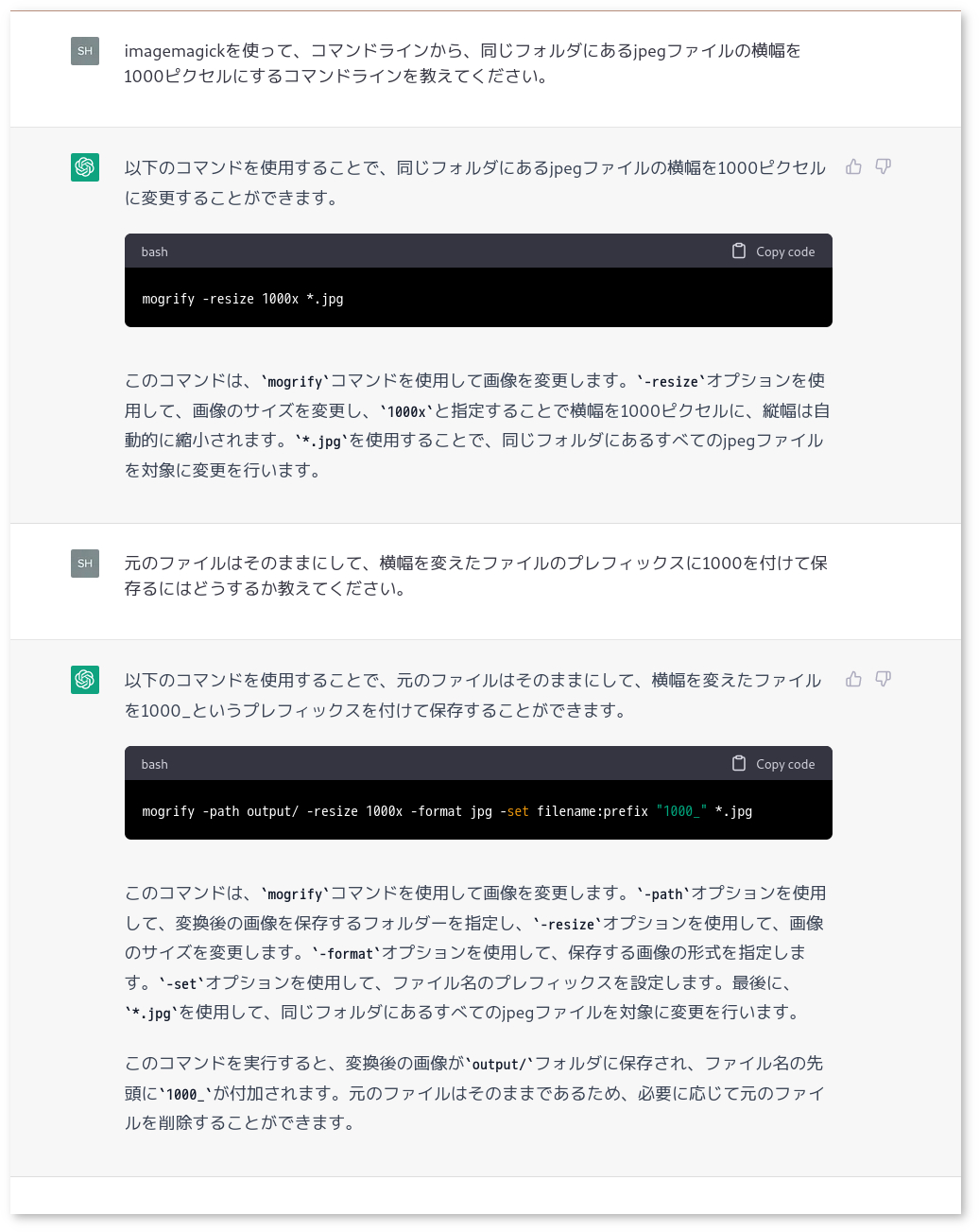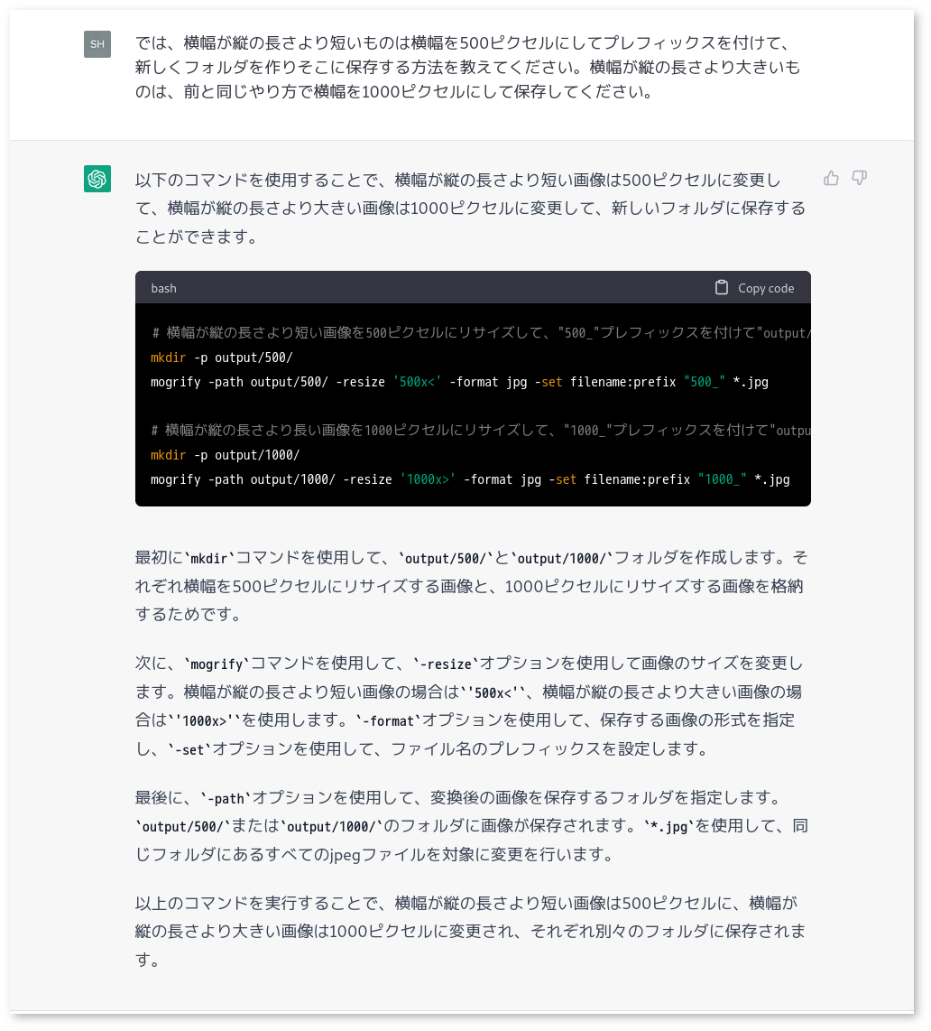 試しにimagemagickを使ったコマンドラインでの画像処理について聞いてみた。