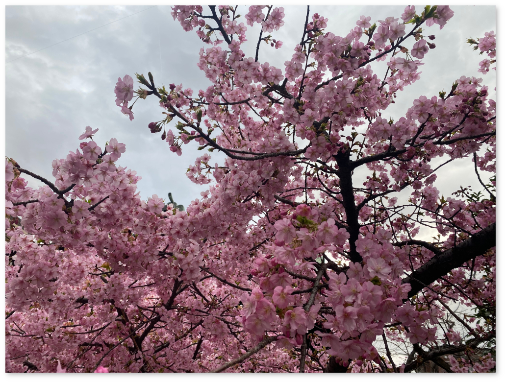 I went to the nearby shrine and took pictures of the Kawazu cherry blossoms that were in bloom. There were many people taking pictures, and what I found unusual was that a Japanese elderly man was taking pictures of two blonde women in super mini skirts with the cherry blossoms in the background. At first, I thought he might be a professional photographer, but he was taking pictures with his smartphone, so it didn't seem like it. He was taking pictures from various angles.