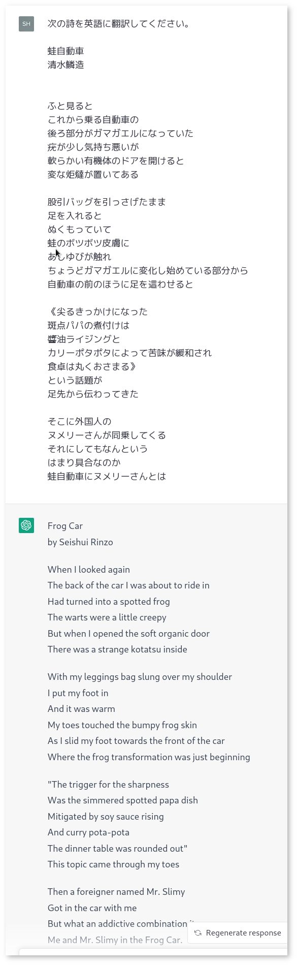 chatGPTは翻訳の精度がいい感じで、改訳するときにも拾える言葉が出てくると思う。詩の翻訳もできそうなので、いろいろやってみることにした。