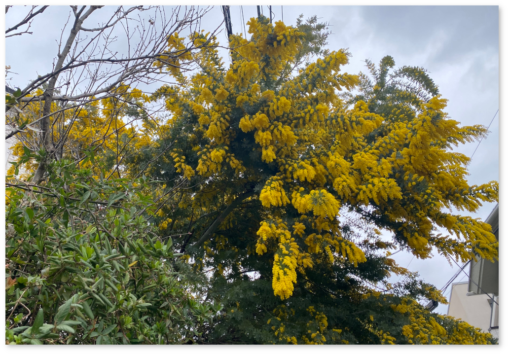 近所のミモザがそろそろ満開になっている。