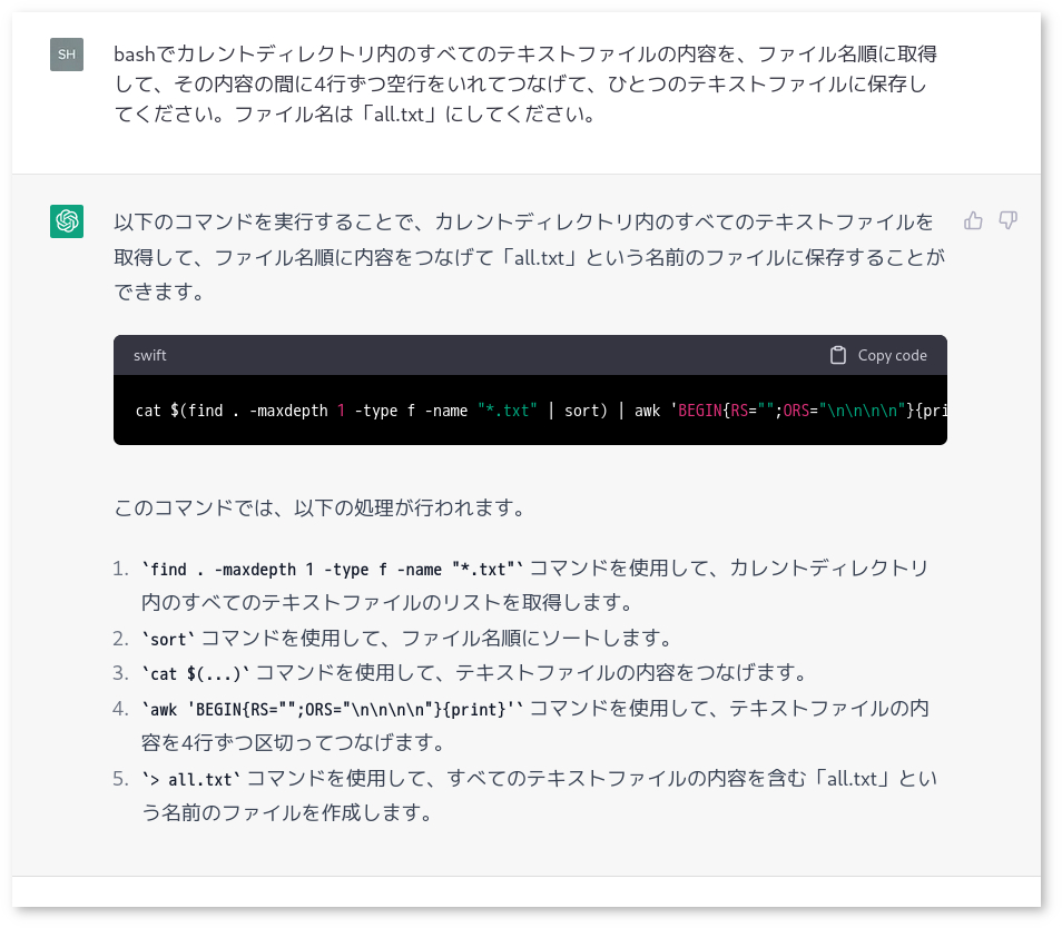 I tried asking about image processing with command-line using imagemagick. It can provide correct answers and explanations, so it's convenient. If you continue asking, it seems to remember the contents of previous questions. It can also quickly provide Excel functions.