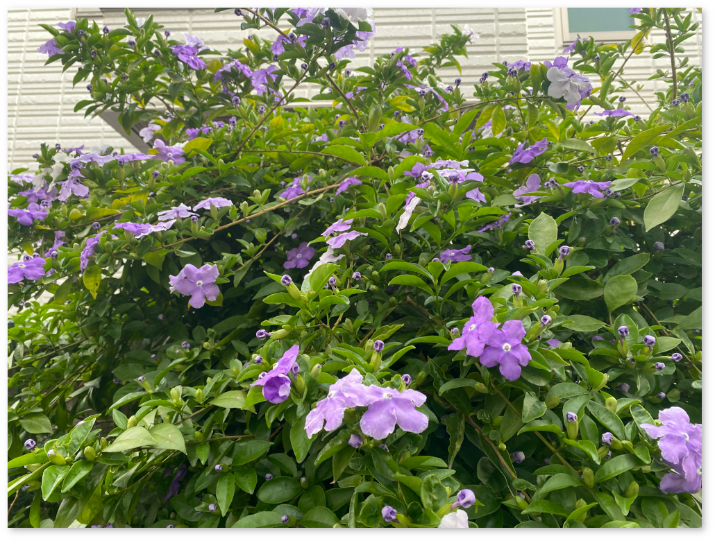 Brunfelsia tree has started to bloom in the backyard of the house.