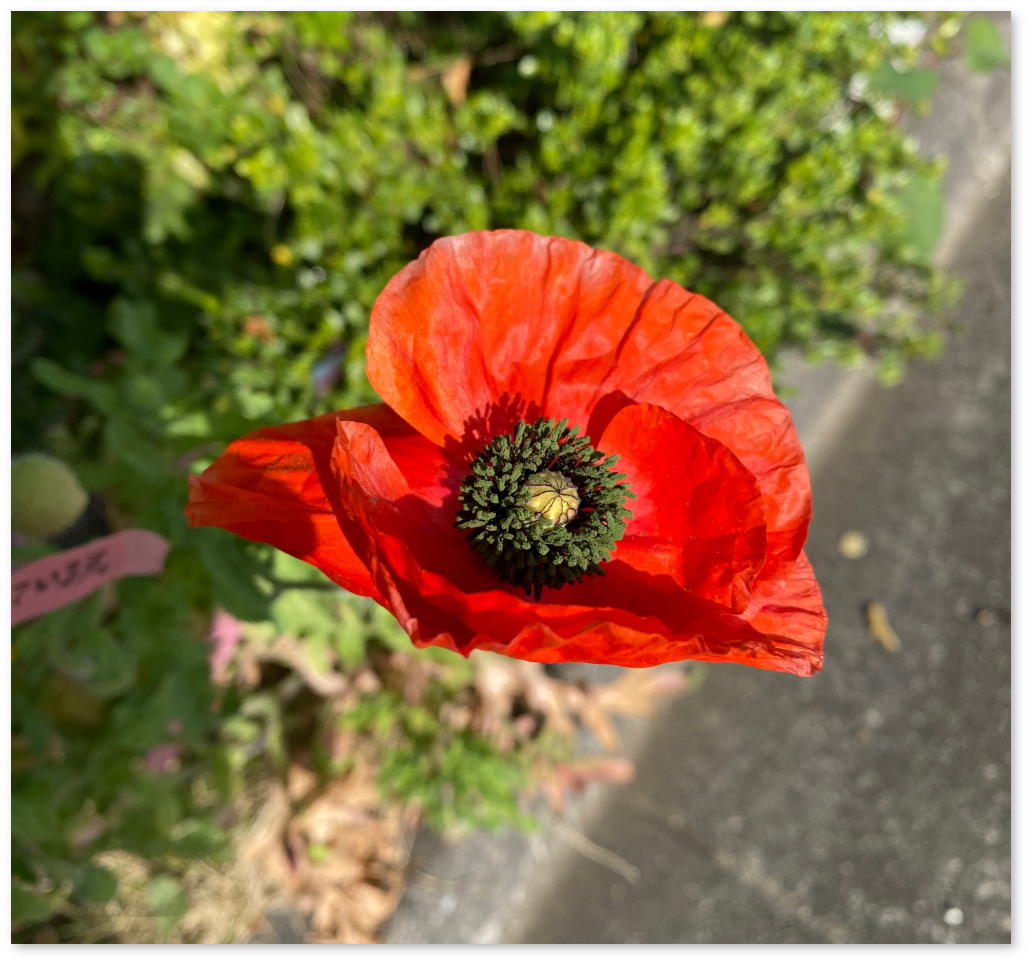 園芸店の隣の草地にヒナゲシがきれいに咲いていた。