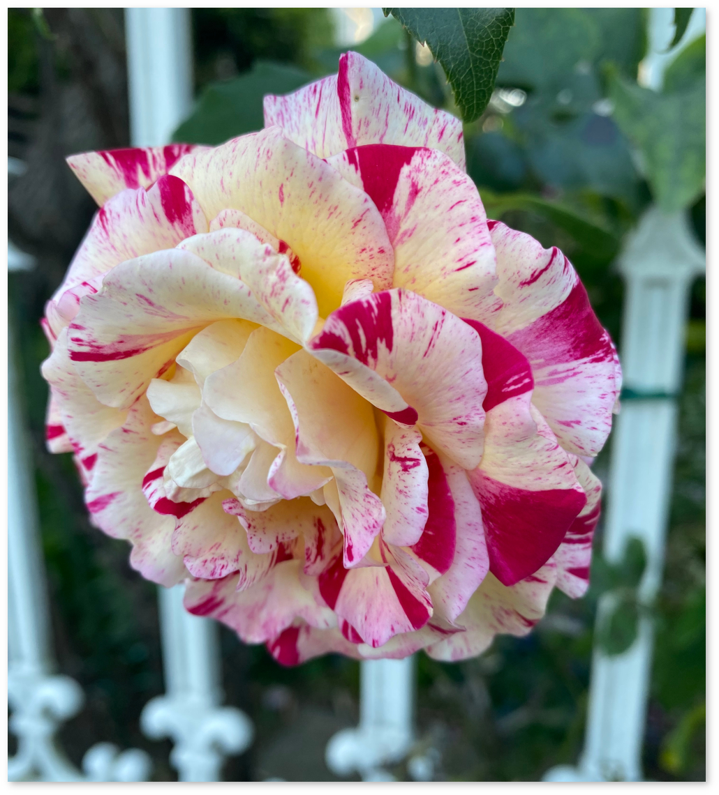 Today, I saw a flower with an interesting pattern on its petals blooming. I also saw places where white roses flourish and flowers that are round. It seems that the season of roses will continue for a while.