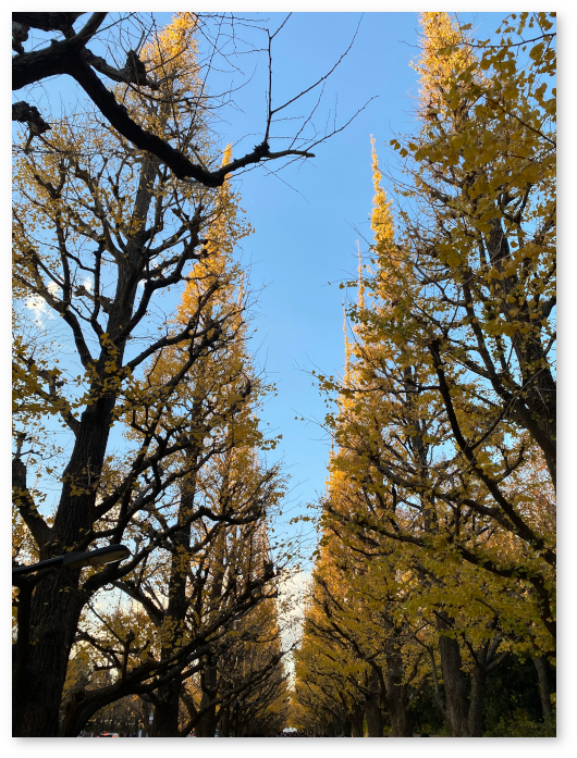 イチョウの紅葉はもう終わりで、落ち葉が舗道にたくさん積もっていた。