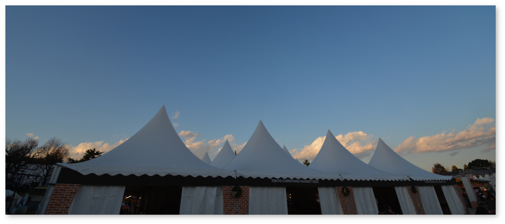 今日は、神宮外苑のイチョウ並木の奥の広場で、「クリスマス・マーケット」というのをやっているというので、行ってみた。