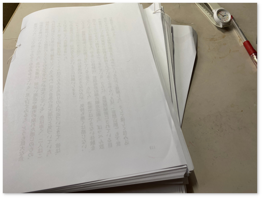 長編小説『あれ』の続きを本にするために、校正プリントを作った。