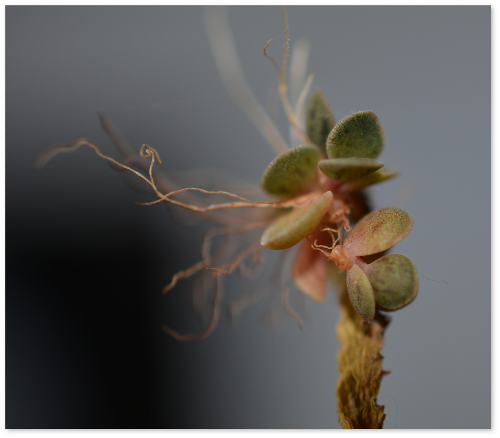 写真は一昨日マクロレンズを使って撮った錦蝶の一葉の仔芽。