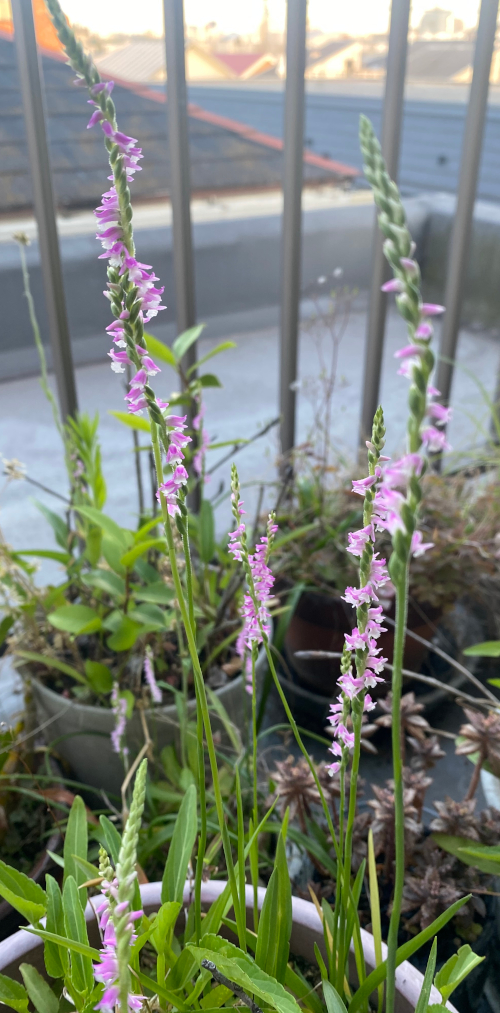 このごろ、雨がときどき降るので、ベランダの鉢植えにまめに水やりをしなくてすむ。