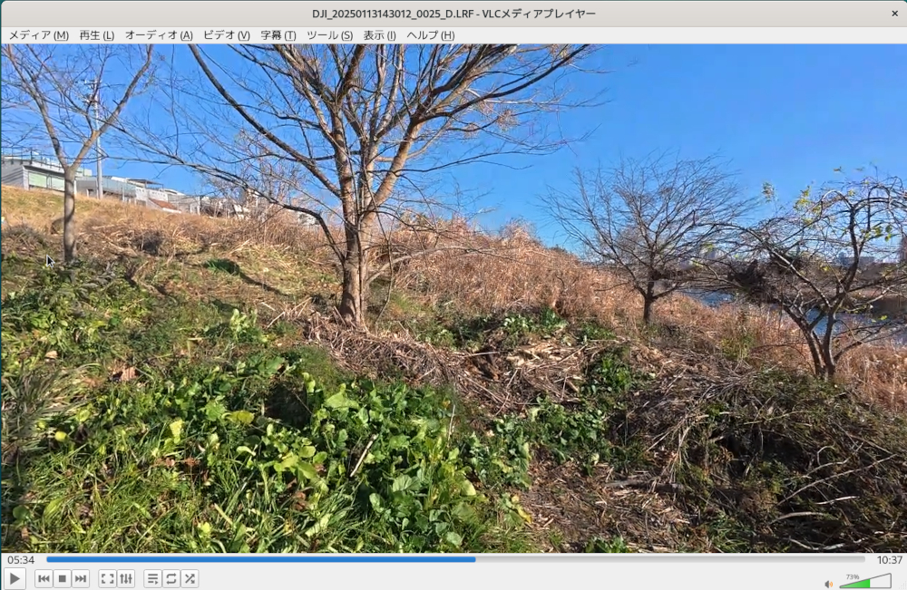 microSDカードには「.MP4」という拡張子のファイルと「.LRF」という縮小ビデオファイルができる。一昨日だかfacebookにuploadしたのはこの縮小ファイルで、4Kよりもこの小さいので十分のような気もする。4KはYouTube投稿のときに使えばいいのかもしれない。まだ編集ソフトを使っていないが、下の画像は縮小ファイルを再生しているのを止めてキャプチャしたもの。