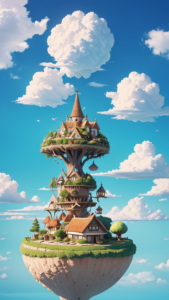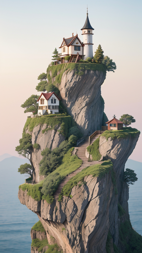 ComfyUIで試した画像生成。保存してあった崖の上の家を生成してみた。