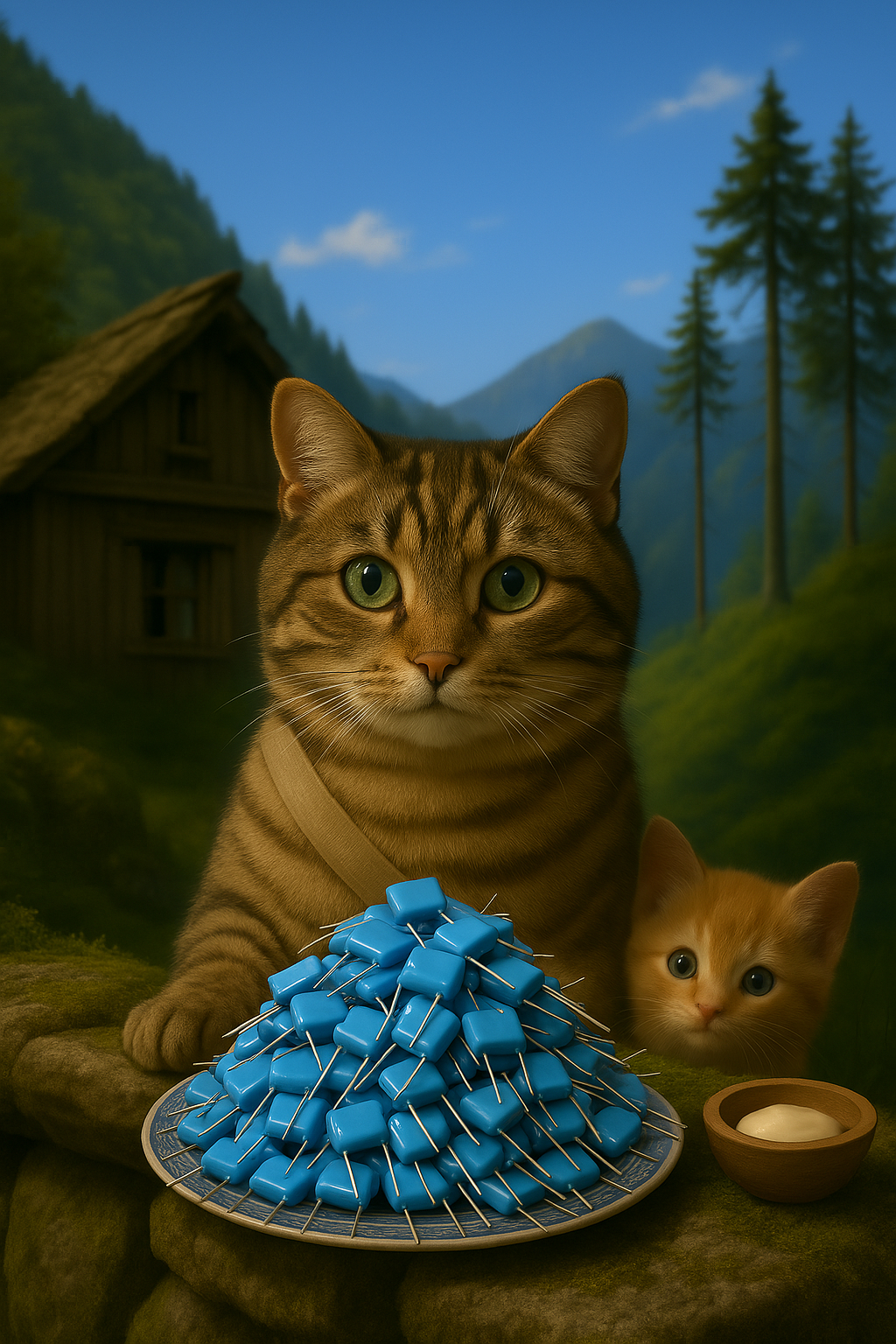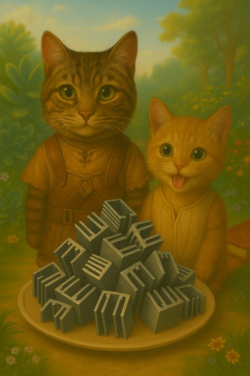 親子猫の前の皿に電子部品が載っている画像を生成しているのだが、だんだんテンプレートとして決まってきた。