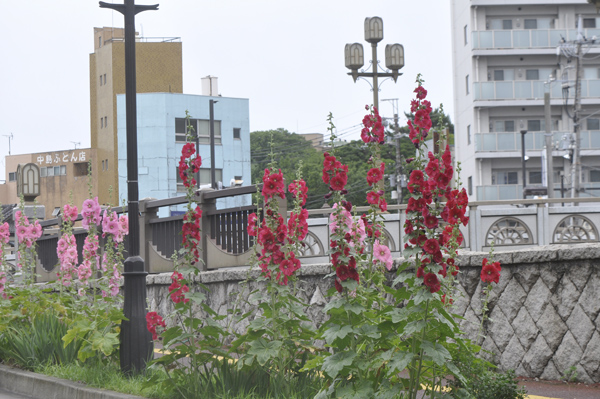 会議の帰り道に見たタチアオイ。