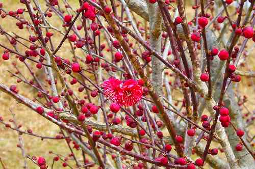 紅梅の方が白梅より早く咲くのですね。