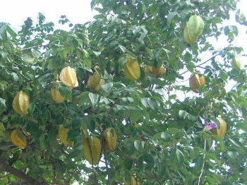 熱帯果樹 スターフルーツ(ゴレンシ)が たわわに実っています。 あんまりおいしいものでもありませんが。
