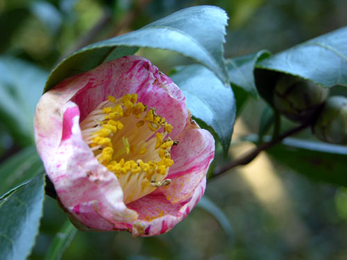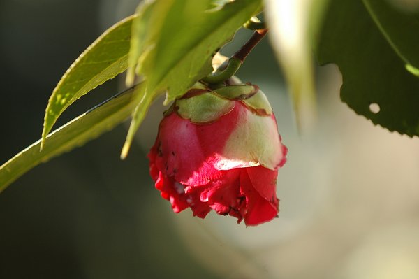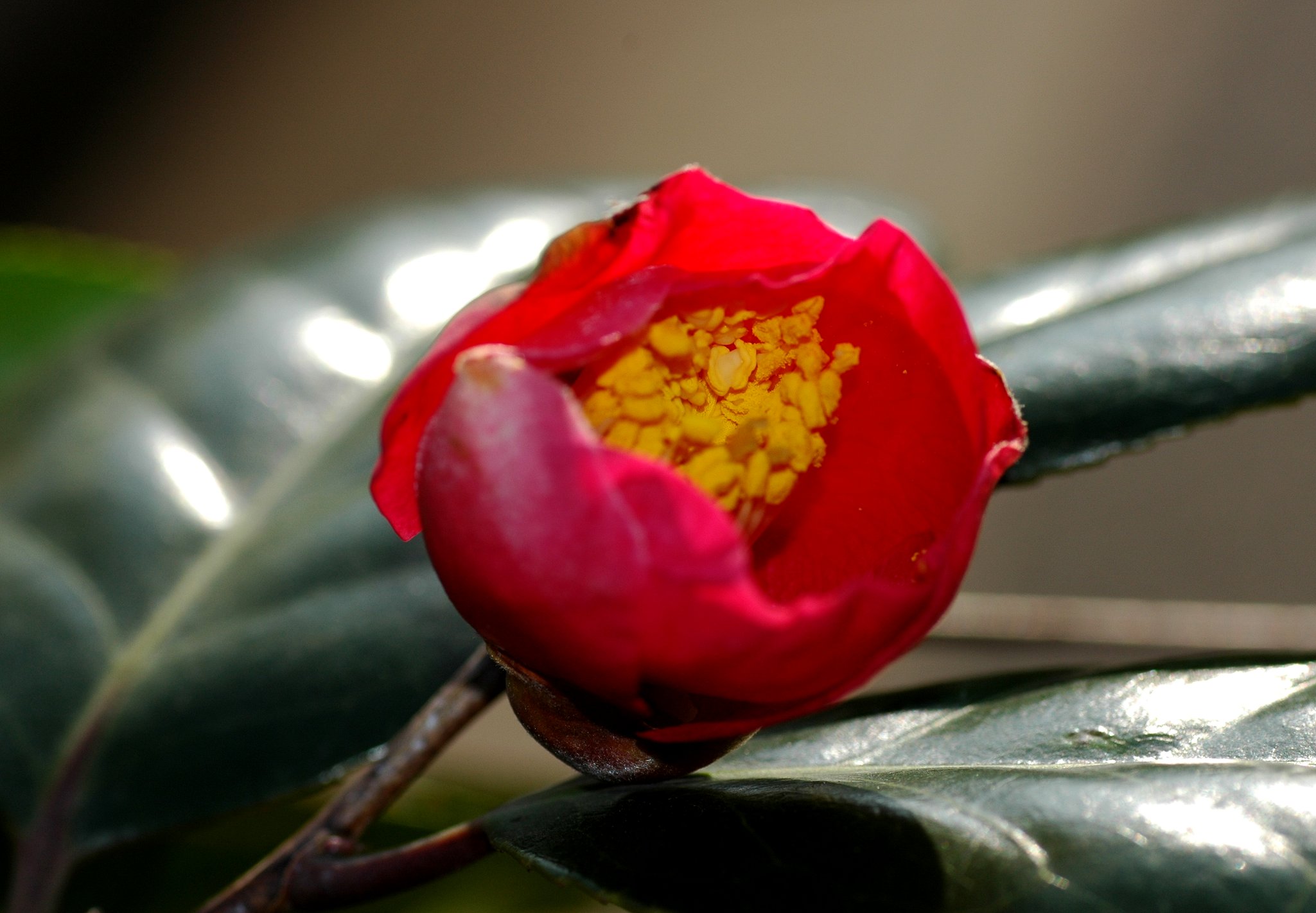 昨日散歩でツバキを見かけましたが、咲きかけたまま