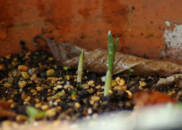 クロッカスの芽がでてきました。