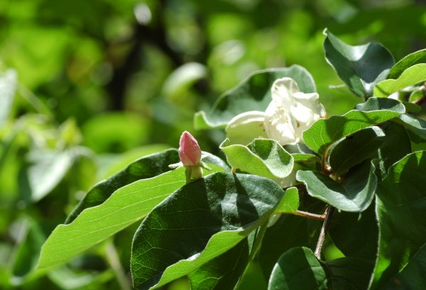 一回だけ池袋で、売られているのを見ました。かりんより毛深く、花が白い。