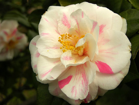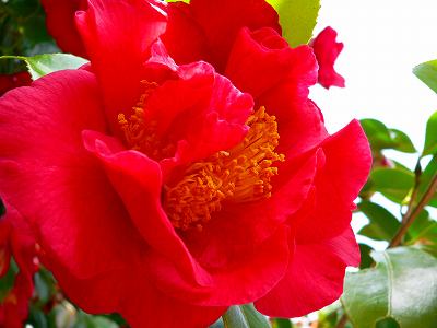 この大きな椿は、案外庭に植えられず垣根のようなのが多い気がします。