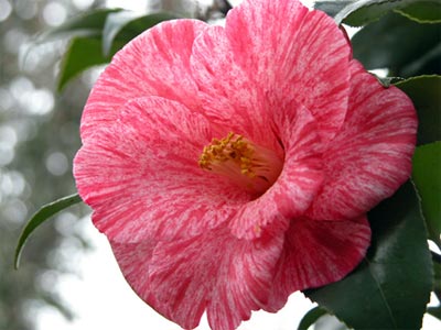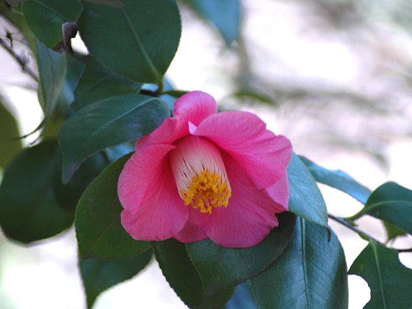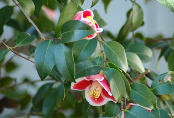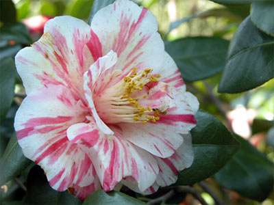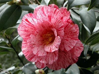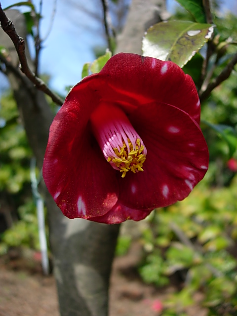 五色ツバキもたくさんあるようですが、たたずまいのいいのはコレでした。満開。