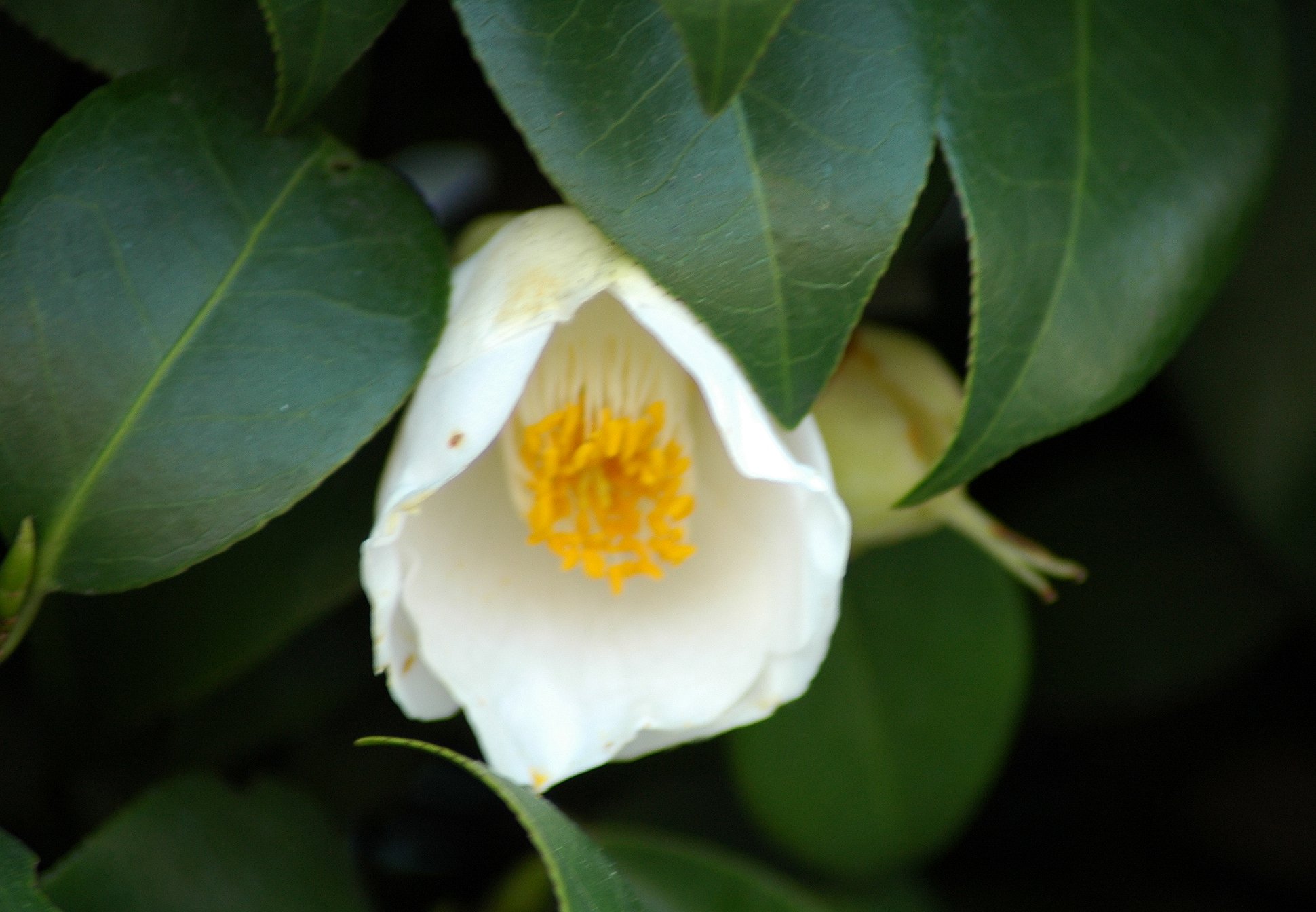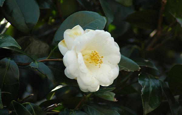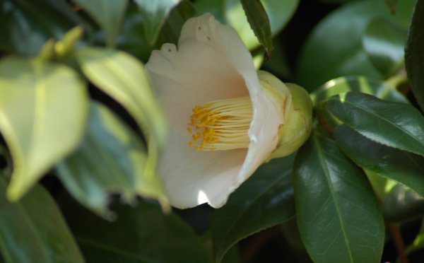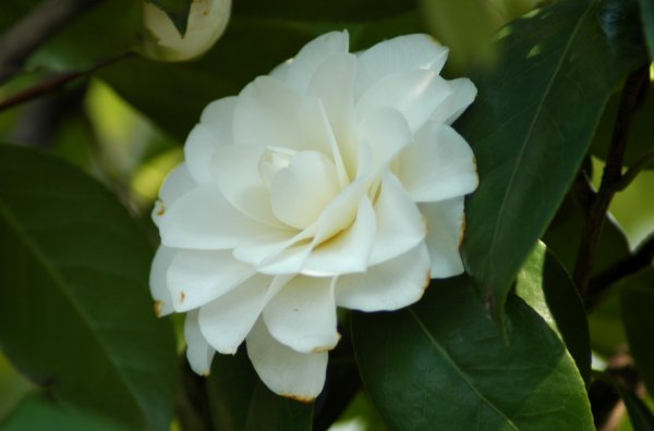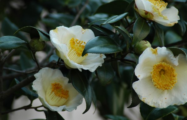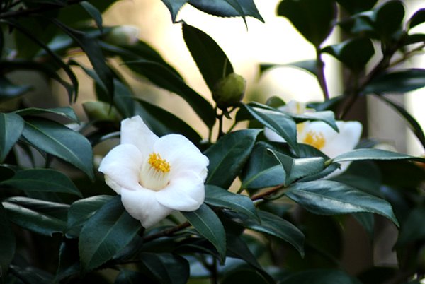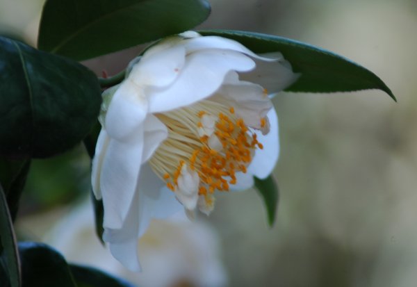 白いツバキで名前が思い出されるのは、最初は白侘助ですね細雪、月の都、白菊月、白獅子、白盃等みな好きです。
