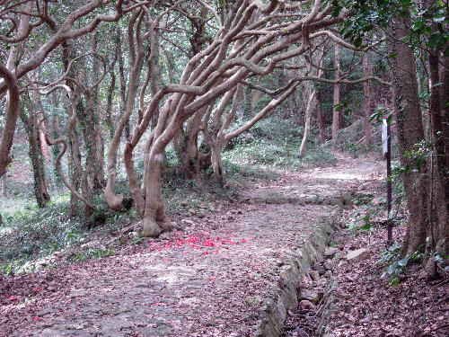 全長百数十メートルのツバキの原生林で樹齢200年以上のツバキが群生していました。