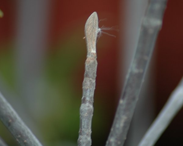 でも、この芽はなんで撮ったかというと、綿毛をつけた種が引っかかっているのでした。