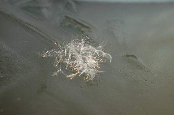 ガマの種も、こうやって飛んでいくと遠くまで行く(はず)よね。