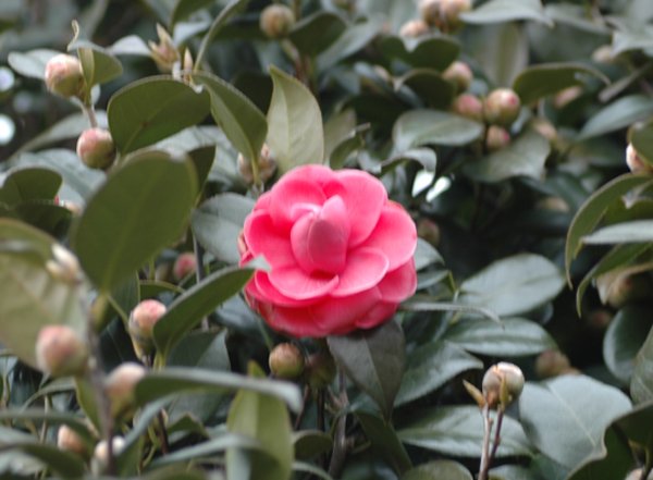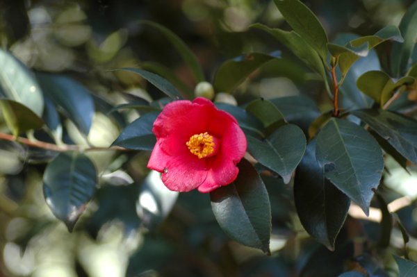 植物園にあった照葉樹林の道・・・ここにあるヤブツバキもそのうちの一本です。この赤は同じようで、ピンク系から結構個体差があるのです。
