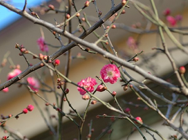 小学校のなかにあった紅梅。