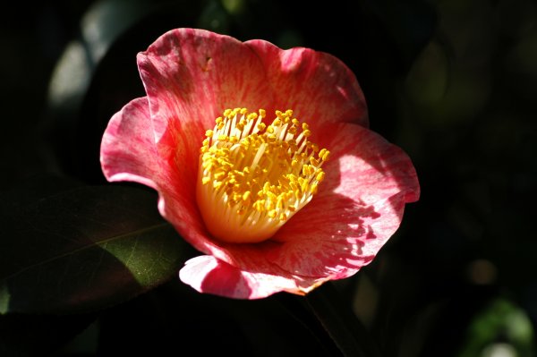 近くの緑道では、サザンカが満開です。