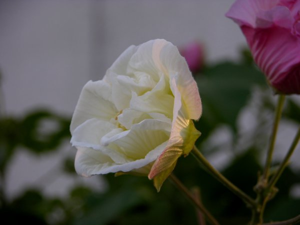 白い花が、夕方にはピンクに。不思議ですね。