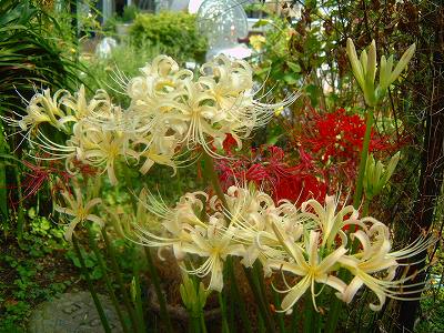 庭の彼岸花。今年は白の方が沢山さきました。