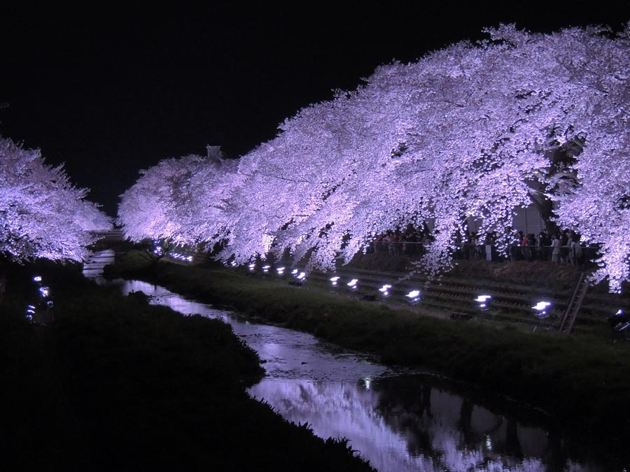 大勢の人が幻想的な夜桜の演出に酔いしれていました。