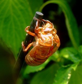 花のつっかえ棒で脱皮したセミです。