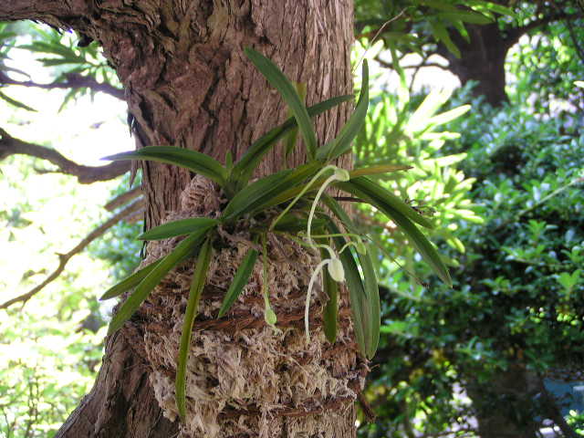 鉢植えの時はなかなか花芽がつきませんでしたが、槙に括りつけたら・・・お見事、・・・花芽がついてます。