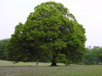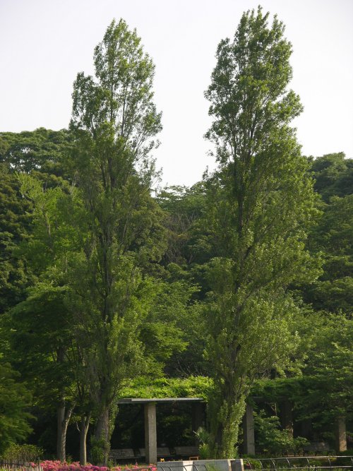 御苑の芝生の中のポプラ?ですか。