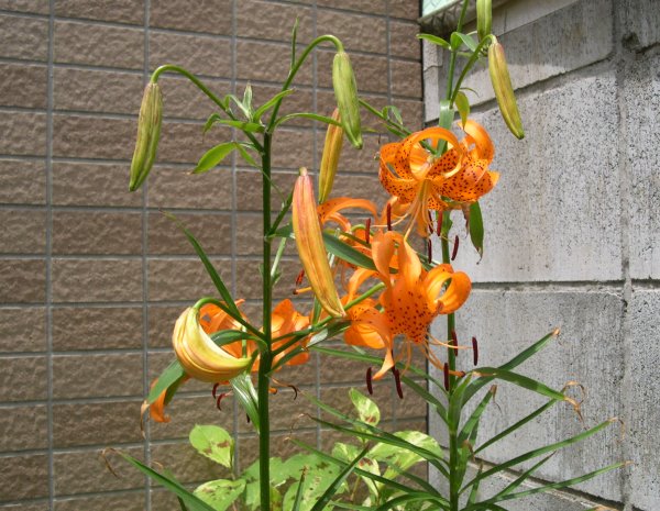 オニユリを久しぶりに見た。ユリはとても種類が増えていて、園芸種は殆ど分からない。スカシユリの変種が多いように思います。