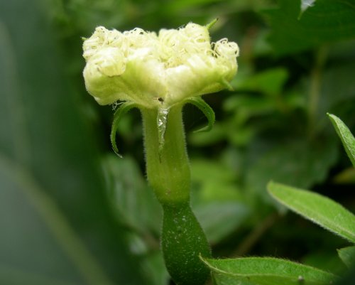 今日、初めて見たキカラスウリの花柄です。
