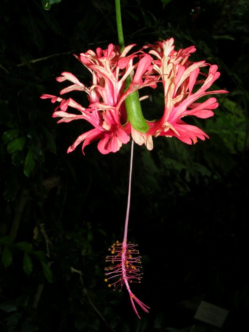 都の熱帯植物園に行きました。フウリンブッソウゲがお迎えをしてくれました。ハイビスカス(ブッソウゲ)は園芸店でよく売られていますが、これはあまり見ません。なんでだろー?