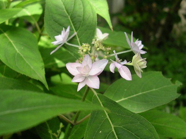 アジサイの仲間にシチダンカがあると、言ったほうがいいでしょう。西洋アジサイなどとのカケアワセなどで、園芸種はとっても多いですね。
